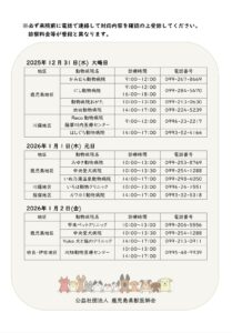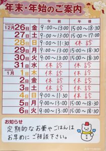 年末年始の休診のお知らせになります